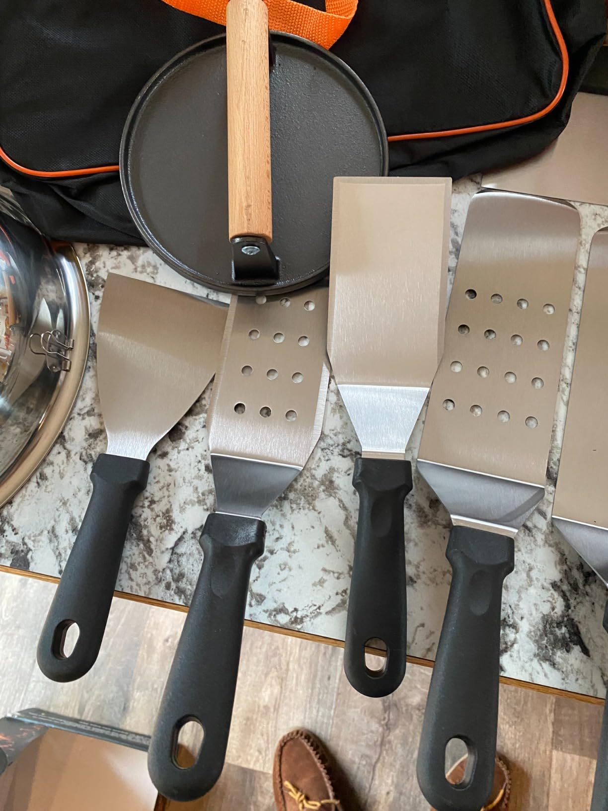 Everything you need to master the flat top. This 6-piece kit gives you professional-grade tools for smash burgers, breakfast spreads, stir fry, and more. All packed in one travel bag.